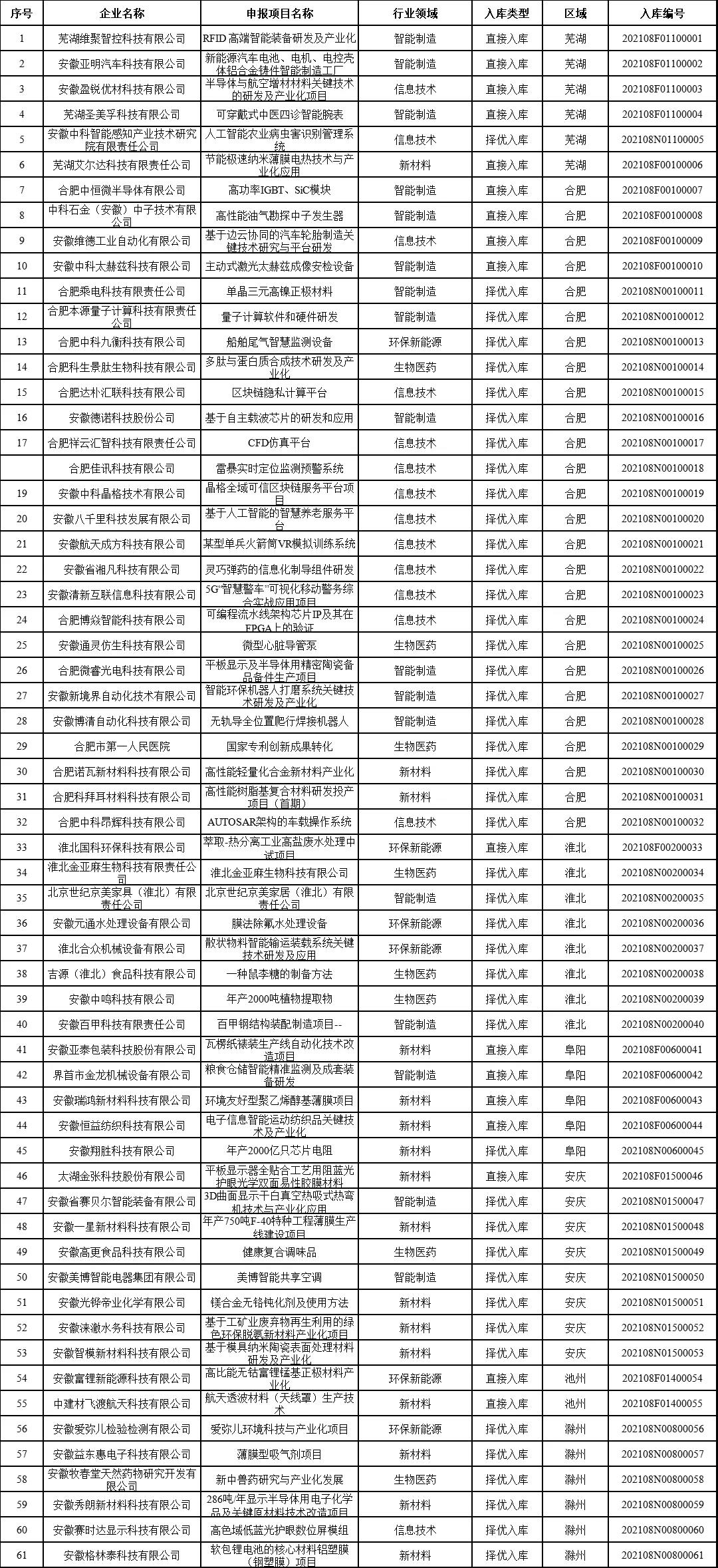 附加:2021年度安徽省科技成果轉化引導基金項目庫第一批入庫項目名單予以公布